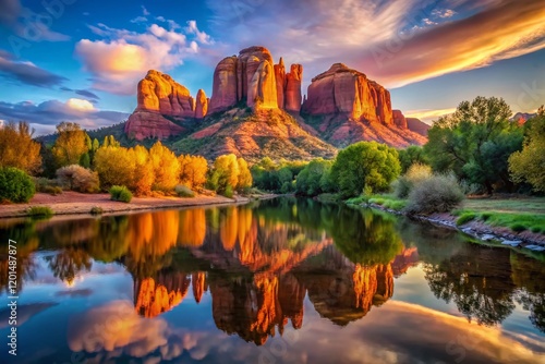 © Man888, Fototapeta premium Sedona Cathedral Rock Reflection - Arizona Landscape Photography