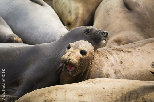 © fotogestoeber, Fototapeta premium See-Elefanten am Strand