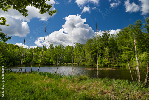 Obraz premium See im Raakmoor Hamburg Langenhorn Frühling Totholz sonnig