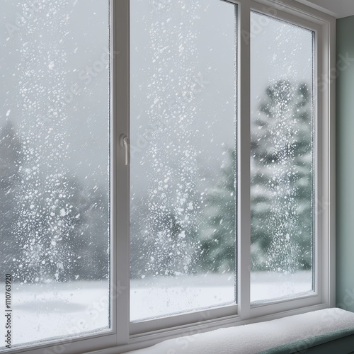 © Ainur, Naklejka premium see the snowfall from inside the house through the glass window