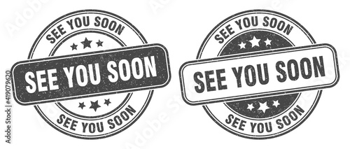 © Aquir, Fototapeta premium see you soon stamp. see you soon label. round grunge sign