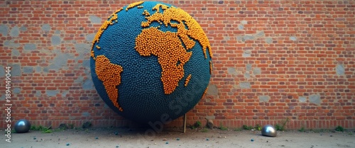 Fototapeta premium Seed ball street art installation on brick wall. Art & Culture