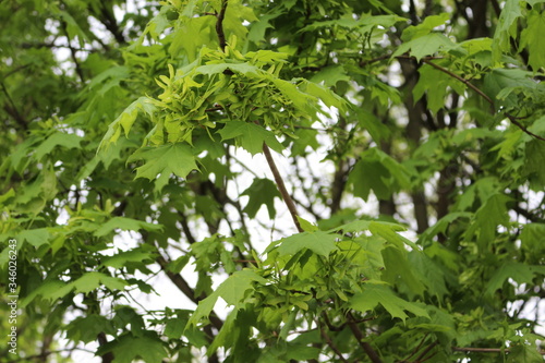 © Yuliya, Obraz premium Seeds ripen on a maple tree