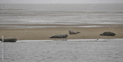 Fototapeta premium Seehunde auf der Sandbank in der Nordsee vor Büsum