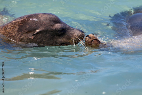 © Olgierd Kajak, Obraz premium Seelöwe schwimmt mit seinem Nachkommen.