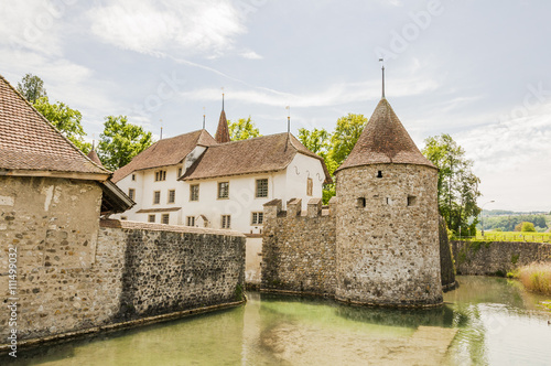 © bill_17, Fototapeta premium Seengen, Dorf, Schloss Hallwyl, Wasserschloss, Burg, Aargau, See, Hallwilersee, Insel, Aabach, Frühling, Sommer, Schweiz