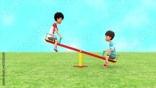© 7activestudio, Obraz premium Seesaw one side applying force 3D Illustration