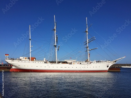 © cyberkort, Naklejka premium Segelschulschiff im Hafen von Stralsund