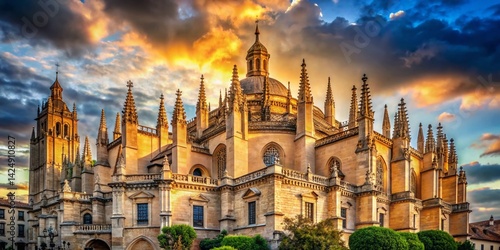 © Sirinporn, Fototapeta premium Segovia Cathedral Majestic Gothic Architecture Portrait Photography