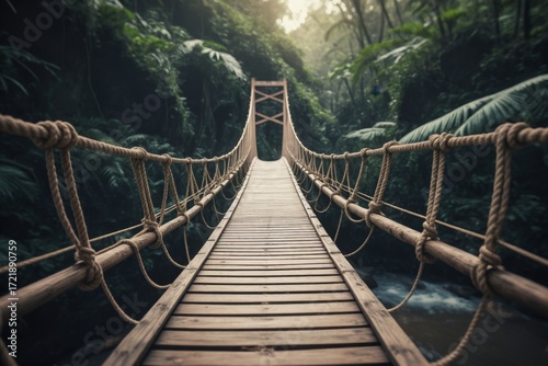 Obraz premium Seilbrücke im tropischen Regenwald, idyllische Wanderung durch die Natur