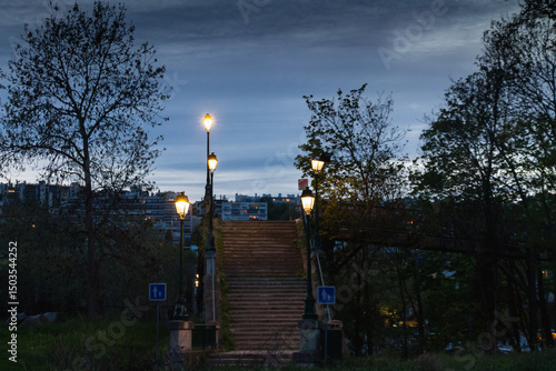 © ILLyas IDOL, Fototapeta premium Seine embankment at the evening and night. Spring in Paris. Blossom and architecture. Insects and flowers. High resolution photo.