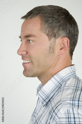 Fototapeta premium Seitliches Portrait von einem Mann mit Hemd