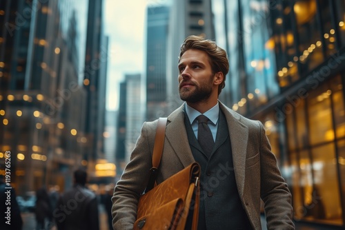 Naklejka premium Selbstbewusster Geschäftsmann in einer urbanen Umgebung – Moderne Business-Dynamik