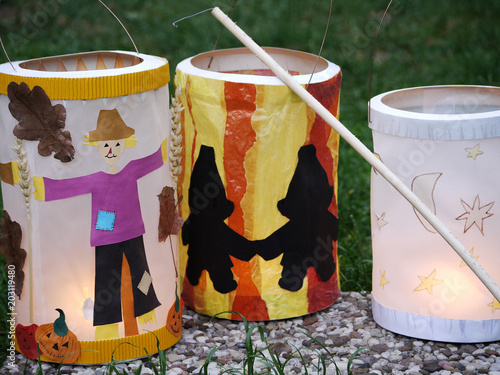 © Barbara Gromadzki, Naklejka premium Selbstgebastelte Laternen für den Martinsumzug