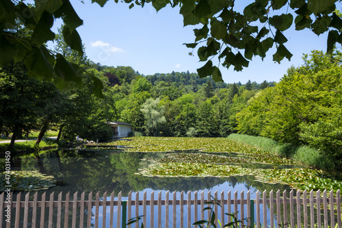 Fototapeta premium Selective blur on Ribnik, the Tivoli garden fish and duck pond, a small lake...