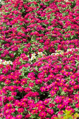 © heartor, Naklejka premium Selective focus close up Photo of beautiful chrysanthemum flowers over green foliage background. Top view.