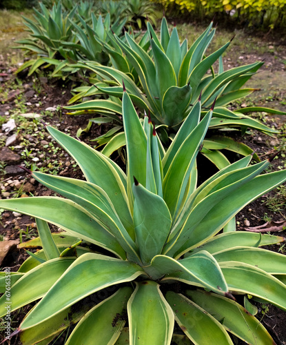 Obraz premium Selective focus. Giant Agave Americana captured in Celosia Park, Indonesia.