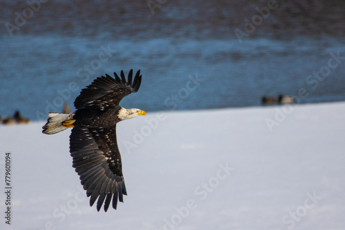 Obraz premium Selective focus of an eagle in flight