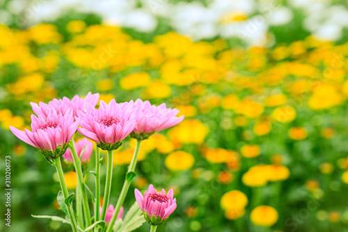 © Pataradon, Fototapeta premium Selective focus of beautiful pink flower with soft blurred bokeh background.