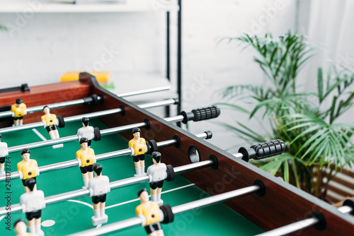 Naklejka premium selective focus of football table in living room
