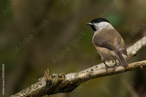 Obraz premium Selective focus shot of marsh tit (Poecile palustris) perched on a branch