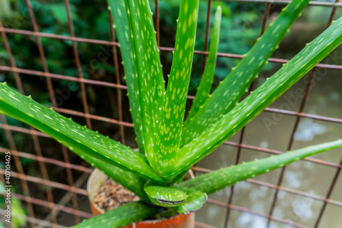© AgungKY, Fototapeta premium Selectively focus on the Aloevera plant