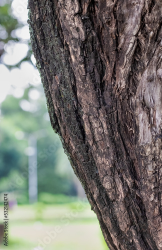 © Xookits, Fototapeta premium Selectively focused tree trunk close up shot with copy space