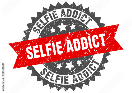 Obraz premium selfie addict stamp. grunge round sign with ribbon