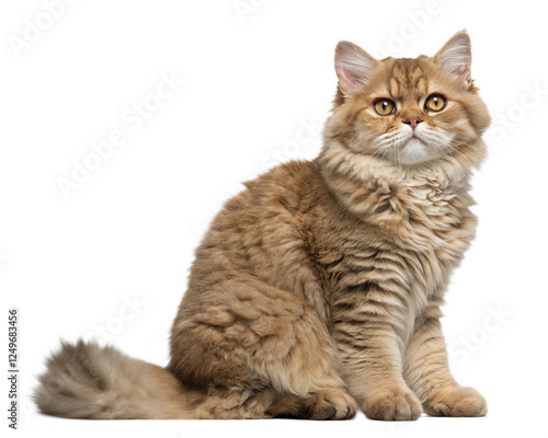 Obraz premium Selkirk Rex Cat Sitting on White Background. Curly-haired Selkirk Rex Cat...