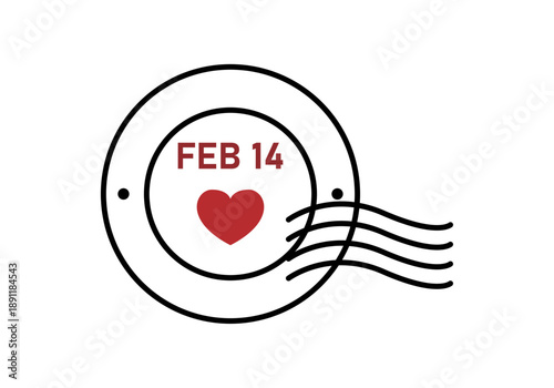 © Gabrieuskal, Obraz premium Sello postal circular con fecha feb 14 y corazón rojo
