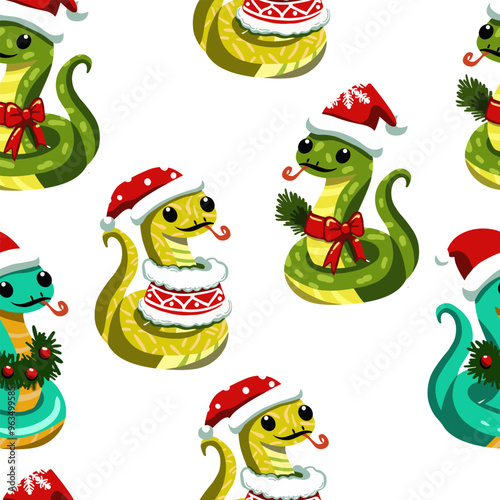 Obraz premium Semaless pattern of snakes, symbol of 2025, cute little snakes for Christmas...