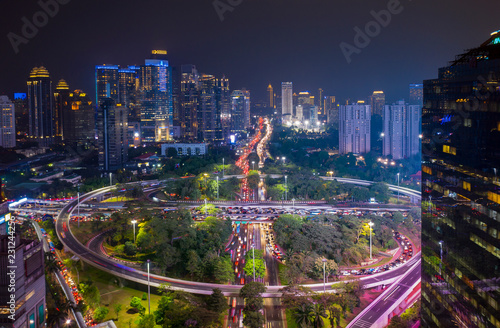 © Creativa Images, Fototapeta premium Semanggi bridge with night lights in Jakarta city