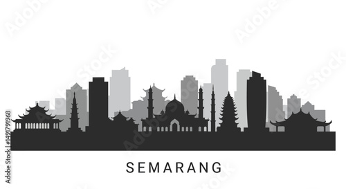 Naklejka premium Semarang Skyline with Indonesia Cityscape Silhouette.