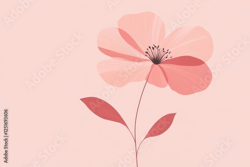 © NpicArt, Naklejka premium Semi transparent flower with stem and leaves on pink background