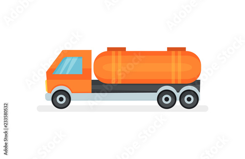 © Happypictures, Fototapeta premium Semi truck with large orange reservoir. Heavy vehicle. Industrial automobile with tank. Flat vector icon