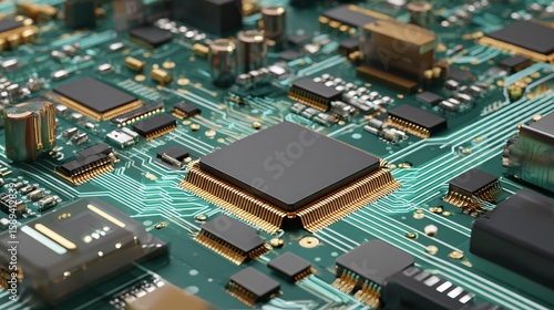 © Nattapol, Obraz premium Semiconductor industry concept with clean PCB tracks and components
