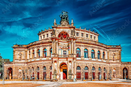 Fototapeta premium Semperoper is the opera house of the Sachsische Staatsoper Dresden (Saxon State Opera) and the concert hall of the Sachsische Staatskapelle Dresden. Saxony, Germany.