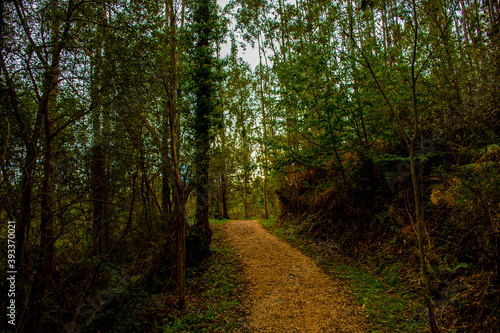 Fototapeta premium Sendero a traves de un bosque con los colores de otoño