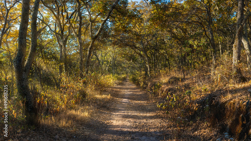 Obraz premium Sendero entre árboles de encino. Forest