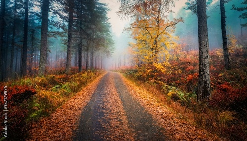 © Argiduna, Obraz premium Sendero rústico en medio de un bosque profundo de otoño