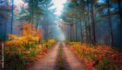 © Argiduna, Obraz premium Sendero rústico en medio de un bosque profundo de otoño