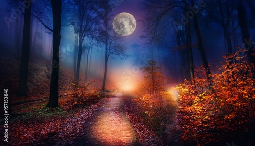 © Argiduna, Fototapeta premium Sendero rústico en medio de un bosque profundo tenebre de otoño