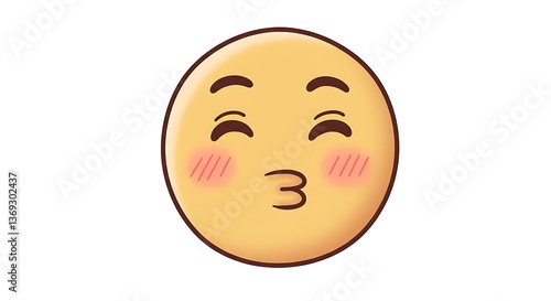 Fototapeta premium Sending Kiss Emoji with Closed Eyes and Rosy Cheeks Illustration
