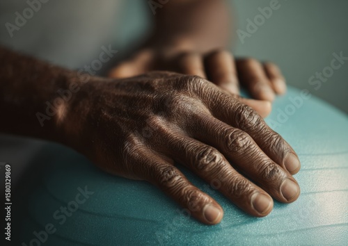 Fototapeta premium Senior Adult Hands on Pastel Pilates Ball — Inclusive Fitness and Gentle...