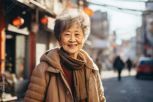 © nao, Fototapeta premium senior asian woman in the Chinese street at 1980s style