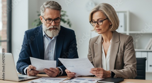 © Kalivmasa, Fototapeta premium Senior business colleagues reviewing documents together