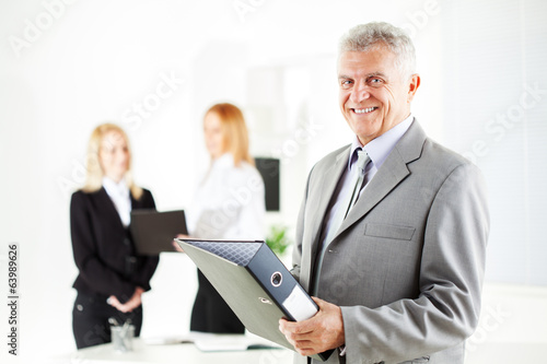 Fototapeta premium Senior businessman with documents standing in the office