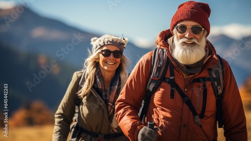 © carballo, Fototapeta premium senior couple hiking outdoors in autumn