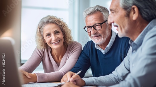 © GustavsMD, Fototapeta premium Senior couple meeting financial advisor for investment. Generative AI.