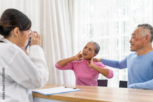 © pixs4u, Obraz premium Senior couple see a doctor with headache